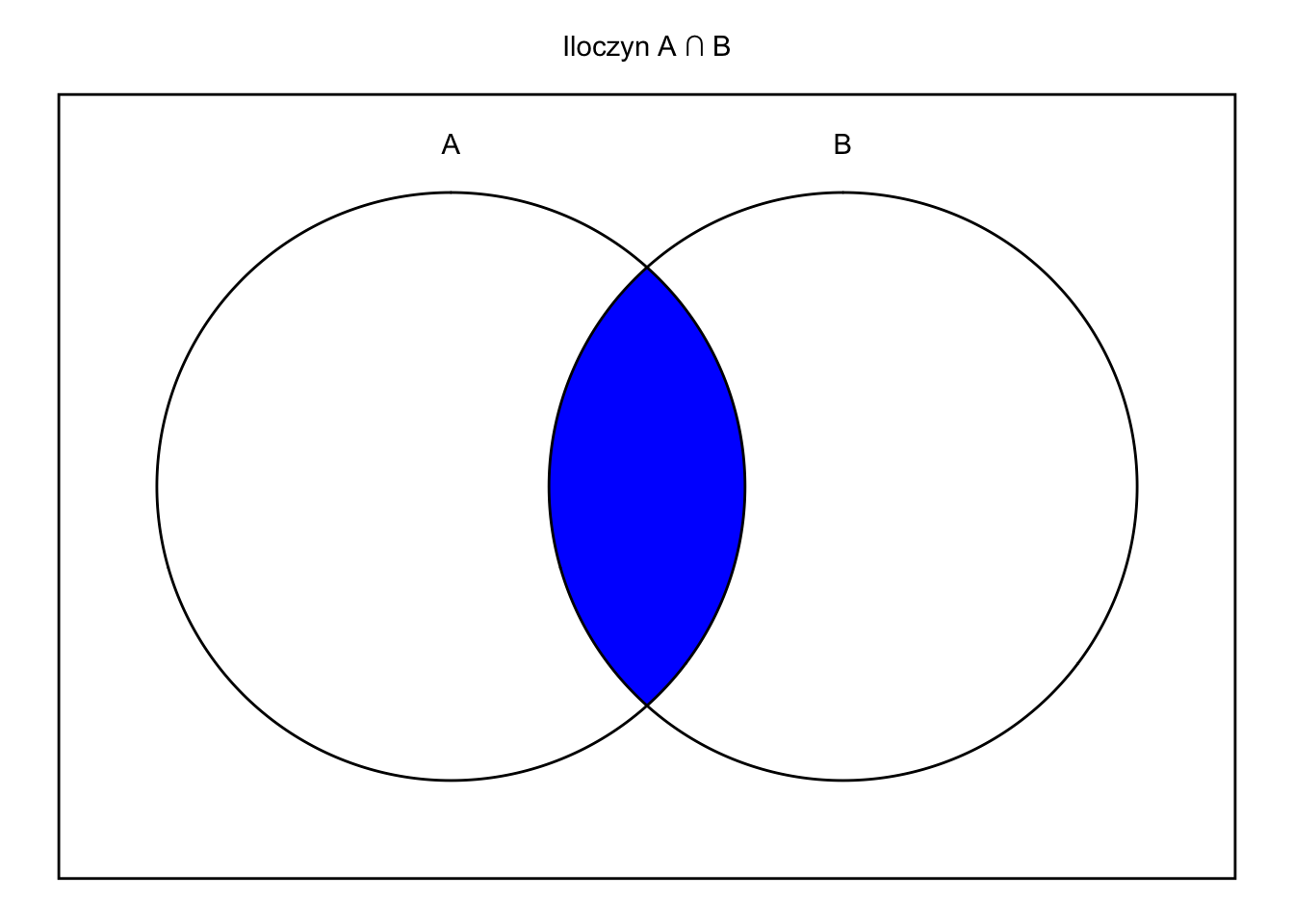 Iloczyn zdarzeń A i B możemy zapisywać jako \(A \cap B\) i czytać „A i B”, „A iloczyn B”. W niektórych podręcznikach iloczyn zdarzeń zapisuje się jako \(AB\), przez analogię do zwykłego iloczynu.