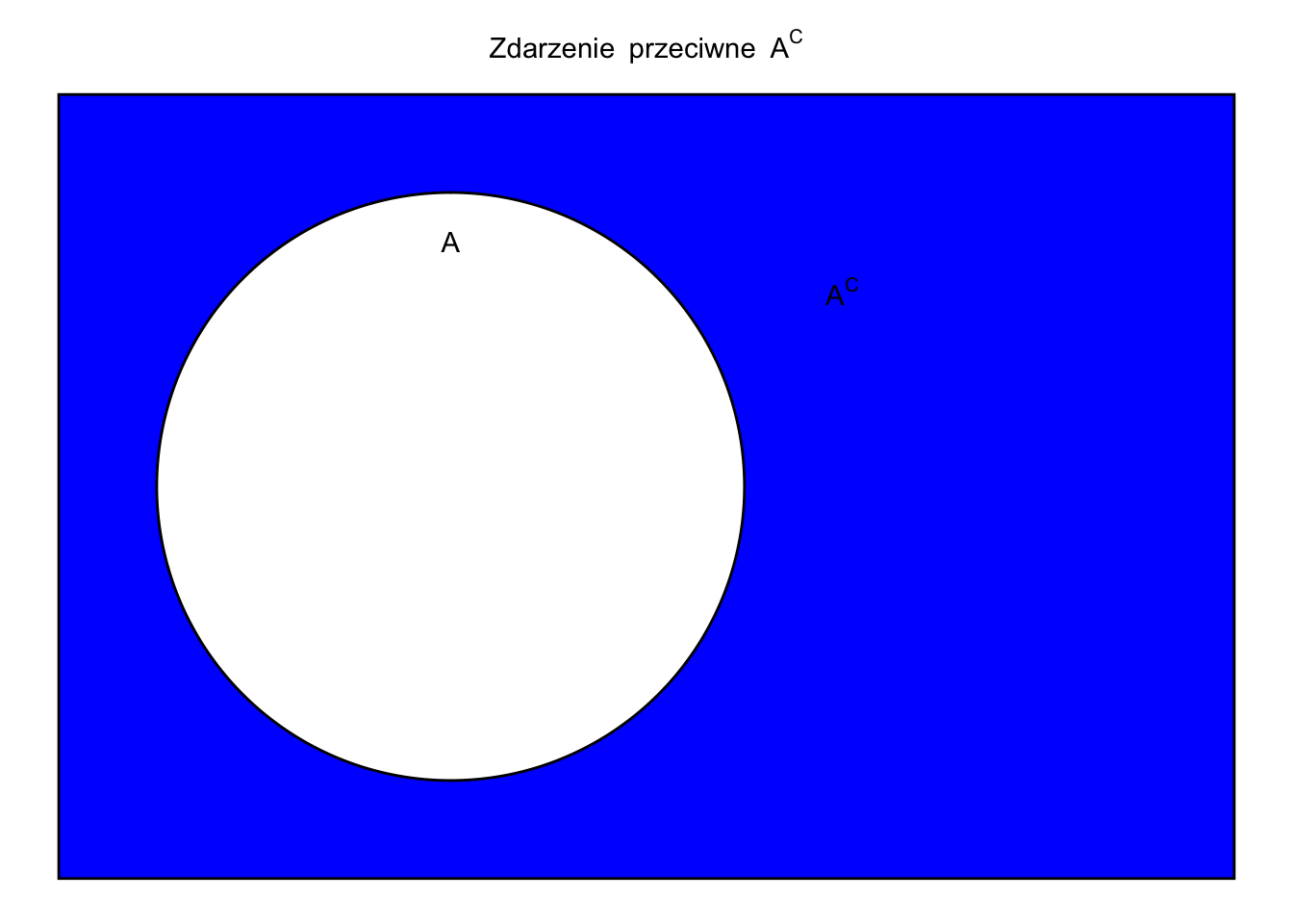Suma prawdopodobieństw zdarzeń dopełniających się (zdarzenia \(A\) i przeciwnego mu zdarzenia \(A^C\)) wynosi 1.