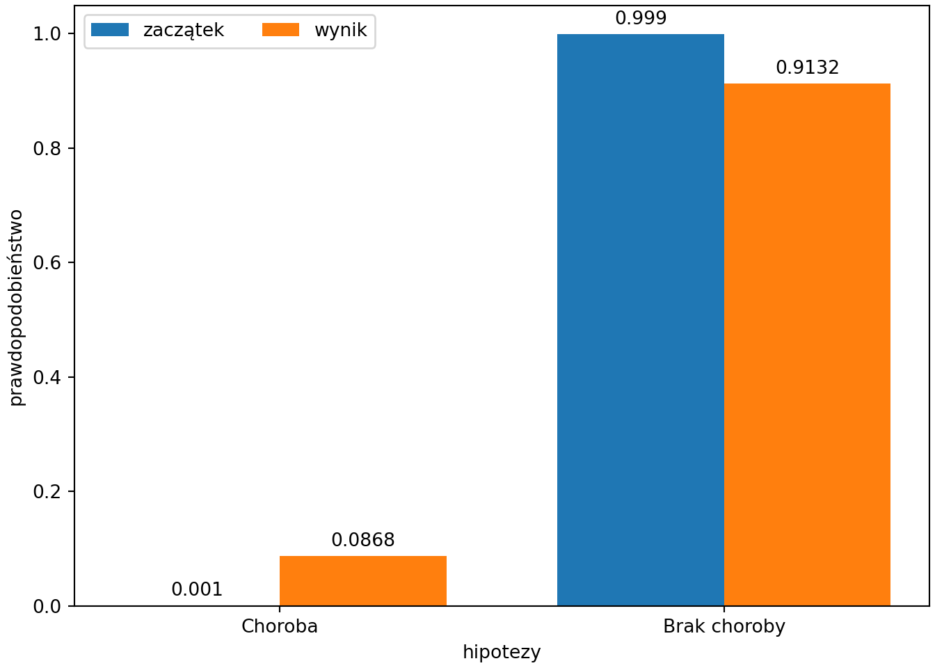 ## 2 Brak choroby 0.999 0.01 0.91316271